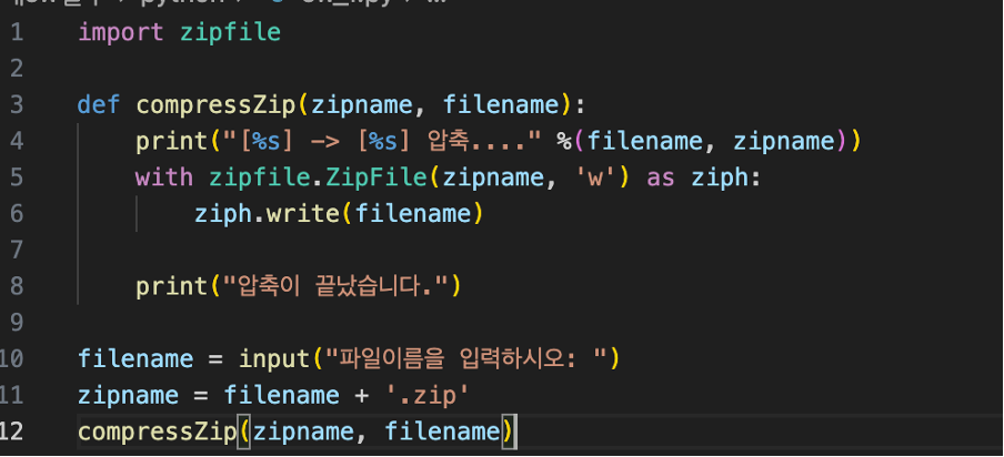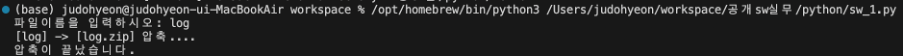 filename을 입력받고 zipname은 filename + .zip으로 저장한다. 이후 위에서 정의한 함수를 사용한다.