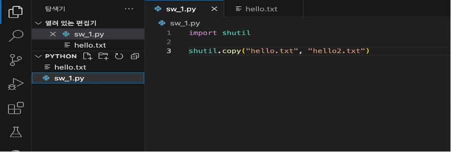 copy함수 = 매개변수 두개를 가짐, 앞에 오는 인자는 copy하는 대상 후에 오는 인자는 copy한 대상을 어떤 이름으로 저장할지 지정