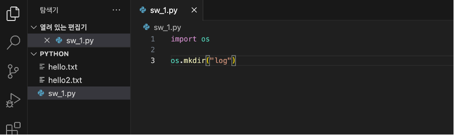 따라서 if문 안에 not이 있기에 log라는 디렉터리가 없다면 mkdir함수가 실행되어서 log라는 이름의 디렉터리가 만들어진다.